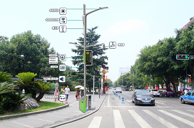 本次雙流棠湖西路一段項(xiàng)目中,華體公司共安裝19柱智慧路燈,其中包含3柱多功能智慧路燈。根據(jù)項(xiàng)目實(shí)際需求,本次智慧路燈試點(diǎn)工作中加載了新能源汽車充電、便民信息觸控屏、USB充電、視頻監(jiān)控、環(huán)境信息查詢、井蓋監(jiān)測、停車管理及公共信息發(fā)布功能。后期將根據(jù)應(yīng)用需求,擴(kuò)展加載如城市應(yīng)急廣播、電動(dòng)汽車分時(shí)租賃等功能。