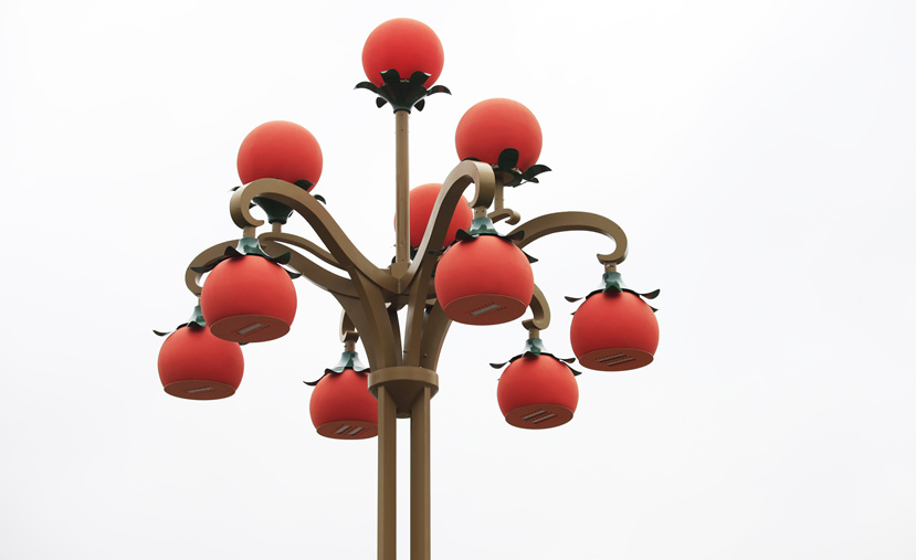 柑橘景觀路燈“碩果累累”別致秀美,一方面,在保證功能照明的前提下,提煉柑橘的形態(tài)作為燈具的主體設(shè)計(jì)元素,詮釋了石門(mén)獨(dú)特的地域特色。日間燈具以景觀雕塑的形態(tài)呈現(xiàn),給人以美的享受。夜晚燈光閃爍渲染,更添了一份別樣的美感,進(jìn)一步增強(qiáng)了道路照明的景觀性、趣味性和文化性,大大地提升了城市形象,使城市面貌煥然一新。另一方面,碩果累累的“果實(shí)”也寄托著石門(mén)縣人民對(duì)豐收的期盼和對(duì)美好生活的向往。