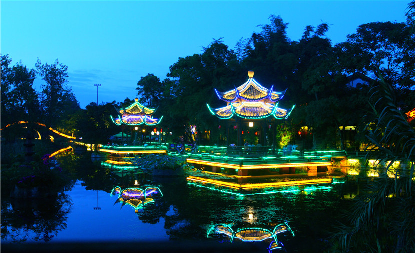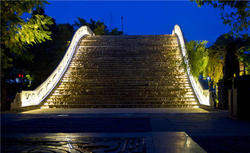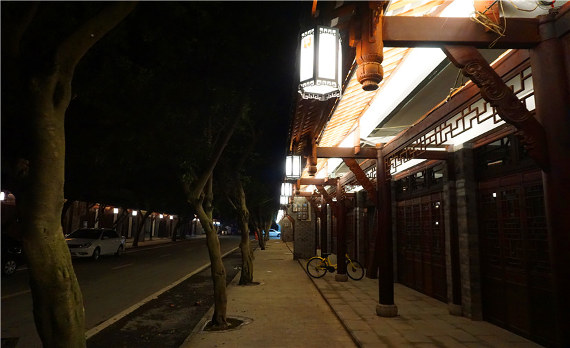 亮化提升后的龍?zhí)稄V場,是進(jìn)入黃龍溪古鎮(zhèn)的門戶。