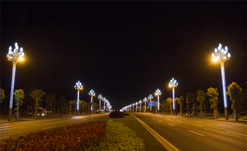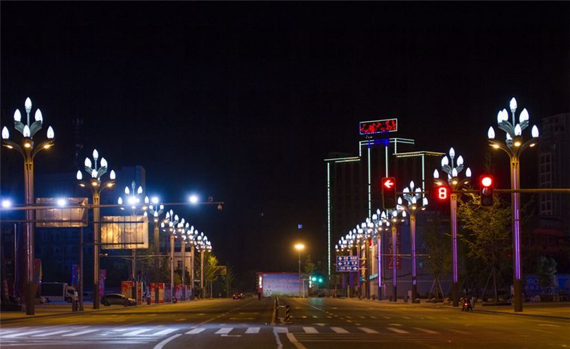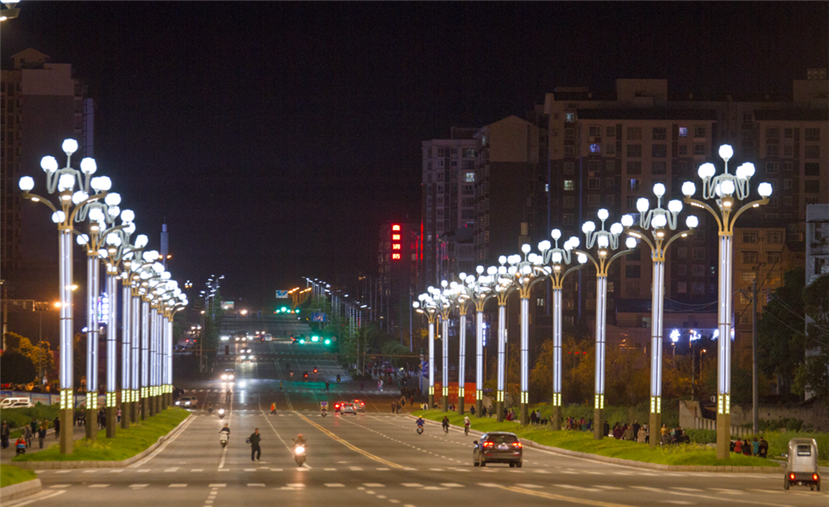 為進一步完善城市照明效果,鞏固建設(shè)成果。營山縣公共事業(yè)管理局于2016年底至2017年初對民政局至一環(huán)路南北段以及芙蓉大道一段進行了整體的道路照明路燈升級改造,四川華體照明科技股份有限公司根據(jù)兩條道路的基本情況,結(jié)合當(dāng)?shù)匚幕厣?,分別設(shè)計并安裝了春意盎然景觀燈和芙蓉中華燈。