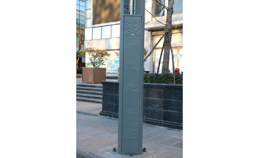 燈桿底座加入麗江古老文化的納西族標志及東巴文字,充分考慮麗江所在地區(qū)少數(shù)民族的民族記憶和民族感情,具有鮮明的民族特色和地方特色。