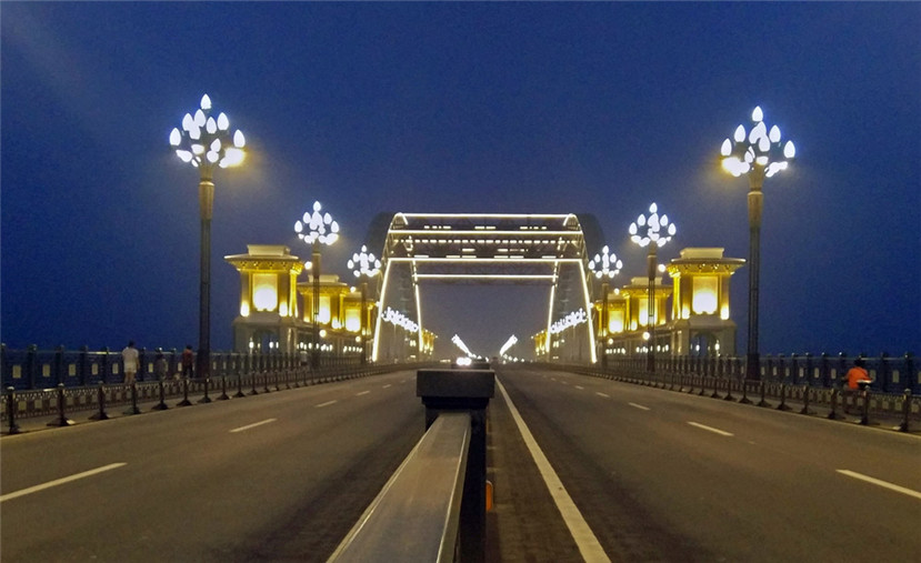 李城大橋本身在結(jié)構(gòu)設(shè)計上就有很好的景觀橋的特點,華體照明經(jīng)典玉蘭燈安裝在橋上,白天玉蘭燈與形態(tài)優(yōu)美的大橋很好地融合在一起,起到了很好的裝飾作用,夜晚與大橋橋身的亮化燈具結(jié)合在一起,成為夜晚大橋上一道靚麗的景觀。