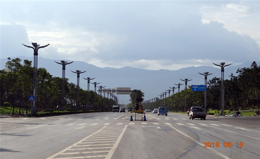 四川華體照明科技股份有限公司(股票簡稱:華體科技 股票代碼:603679)有幸參與到該項目的路燈建設(shè)中,為業(yè)主方量身定制創(chuàng)意系列“流光溢彩”路燈近500套?!傲鞴庖绮省睙粜驮O(shè)計以簡潔流暢的線條為設(shè)計元素,結(jié)合現(xiàn)代簡潔的設(shè)計手法,提取流暢的線條,燈臂如展翅翱翔的翅膀,寓意城市蓬勃發(fā)展、日甚一日。