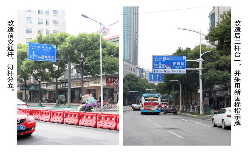 華體照明為其定做的“展望”多功能共享桿,將各種桿體集中到路燈一根燈桿上,天網(wǎng)攝像頭、路邊交通指示牌全部遷移至共享桿桿體上,獨立的小桿全部被拔除,攝像頭背包箱中的設備也轉(zhuǎn)移到共享桿的燈座內(nèi),桿體從此不再“背包袱”。