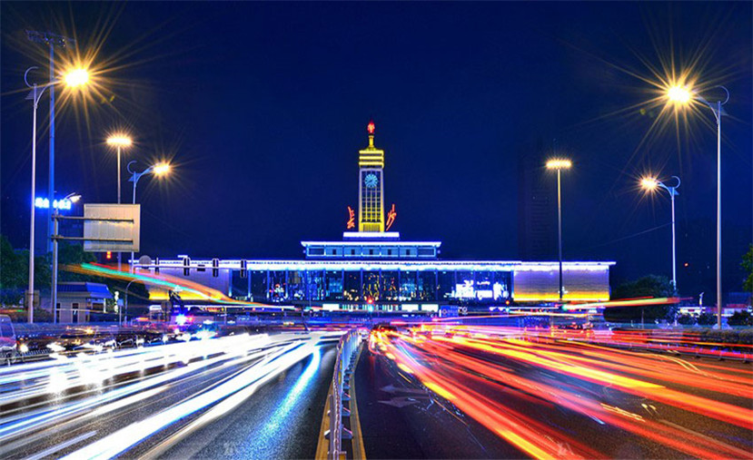 華體照明根據(jù)車站北路兩旁香樟樹綠綠蔥蔥的特點,將燈桿顏色設計為深綠色,和道路兩旁環(huán)境渾然一體,相互協(xié)調(diào)。