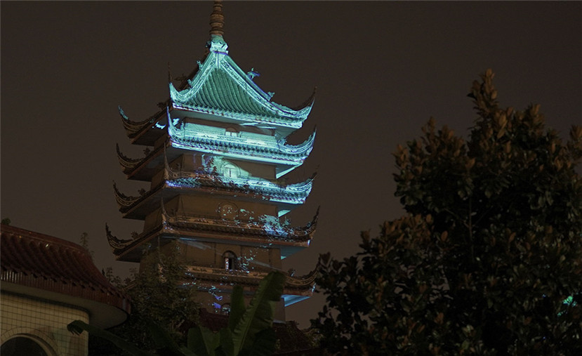 進(jìn)出機(jī)場的時候,旅客可以觀看到機(jī)場旁的觀音古塔燈光秀,古塔上活蹦亂跳的熊貓和變臉,以及世警會元素的動畫,向世界展現(xiàn)出成都的熱情。