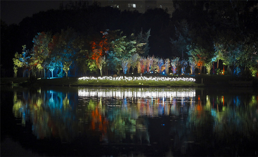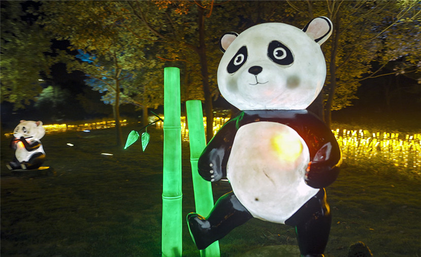 每一個公園還有自己獨(dú)特的光定位和光主題,比如,華體科技就專為鳳翔湖公園打造了獨(dú)具成都特色的大熊貓互動燈光裝置,讓夜色下的公園夜色更加活潑和靈動。