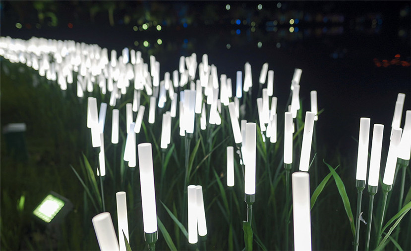 在五個公園夜景打造方面,華體科技根據(jù)公園的主題定制了與公園環(huán)境相融合的燈光小品,如麥穗燈、蘆葦燈。定制燈光小品在夜間散發(fā)出柔和的光,讓公園夜景更美輪美奐。