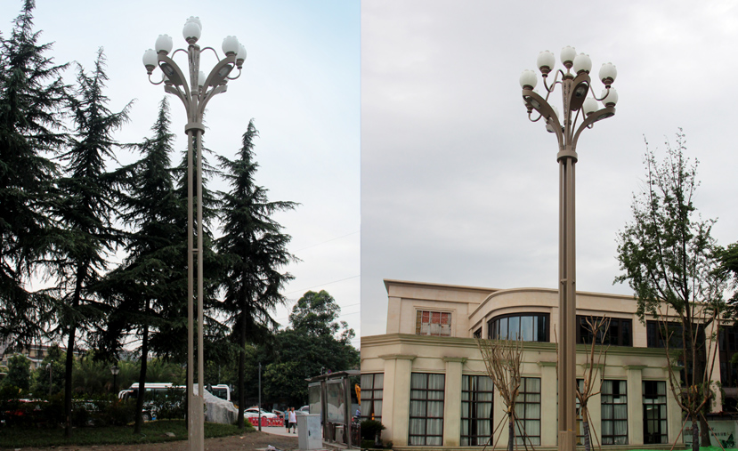 芙蓉中華燈,將成都市市花——芙蓉文化元素,運(yùn)用在多頭、植物造型燈桿的中華燈上。突破了傳統(tǒng)中華燈造型與照明功能,不能兼顧的缺陷,實(shí)現(xiàn)了功能照明和景觀(guān)照明完美結(jié)合,整燈呈現(xiàn)大氣、穩(wěn)重之感。波罩內(nèi)為我公司專(zhuān)屬配置的芙蓉?zé)舨ㄕ止庠矗G色照明,節(jié)能環(huán)保。華燈初上,璀璨奪目的芙蓉中華燈與來(lái)往的車(chē)輛交相輝映,使成都市迎賓大道的“美麗指數(shù)”直線(xiàn)上升。