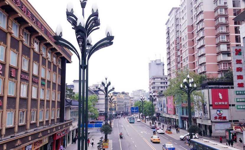 宜賓為了打造長江上游國際生態(tài)山水園林城市,加快翠屏區(qū)中心城區(qū)舊城改造步伐,2014年1月將宜賓城區(qū)人民路、中山街、專署街路燈設(shè)施進行升級改造。四川華體照明科技股份有限公司為此改造項目提供了照明方案設(shè)計、產(chǎn)品研發(fā)制造等服務(wù)。本次照明改造項目采用的燈型為八叉九火玉蘭燈和四叉五火玉蘭燈,數(shù)量共計70套。燈型設(shè)計方面,在保留玉蘭燈燈型美,對宜賓經(jīng)典文化元素進行挖掘,加之符號化,并運用到燈型設(shè)計中,在滿足功能照明的前提下,提升道路景觀性。