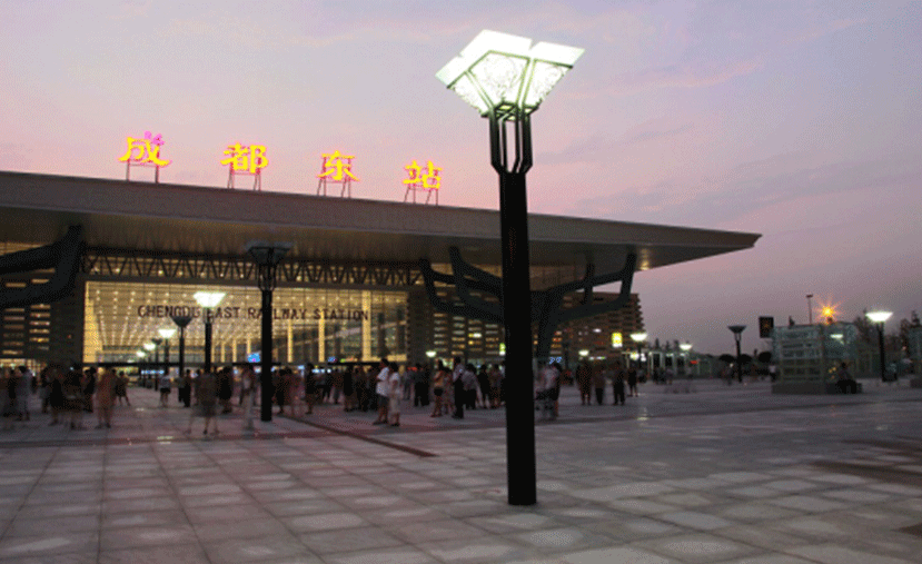 成都東站使用的是景觀燈“耀”。該景觀燈時尚、大氣而又具有復(fù)古氣息。