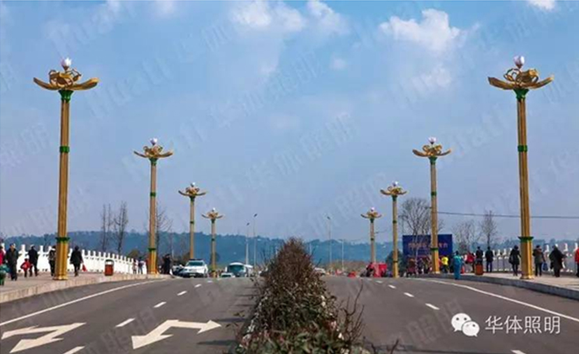 四川眉山市老泉橋,是連通眉山城區(qū)與東坡島的重要交通樞紐,也是東坡湖上一道亮麗的風(fēng)景線。2014年12月,華體照明為老泉橋增添—“金荷羅裙”景觀照明路燈。