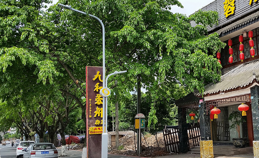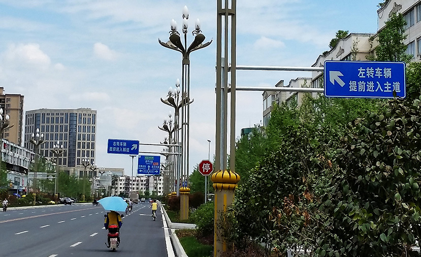 神暉,彰顯出邛崍歷史文化名城的豐厚底蘊和文化韻味,符合古城的城市特性,提升公共空間品質(zhì)。在燈桿中段建立連接,加載了司馬相如贈與文君的“鳳求凰”典故元素,設(shè)計簡化標志形成圖案,保留及傳承了這對才子佳人的“文君當壚,相如滌器”的千古愛情佳話。