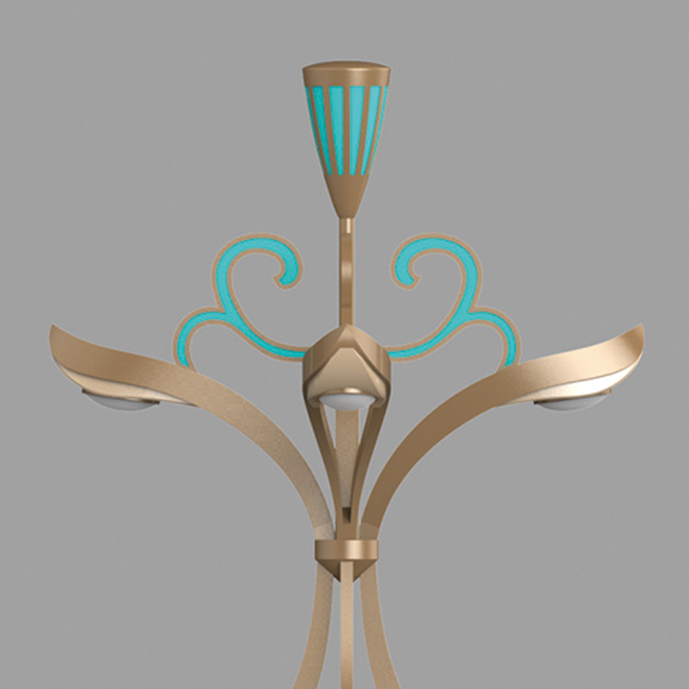 燈型以蓮花為創(chuàng)作元素,經(jīng)過設(shè)計(jì)者的提煉,將蓮花與花瓶的形態(tài)相結(jié)合;
