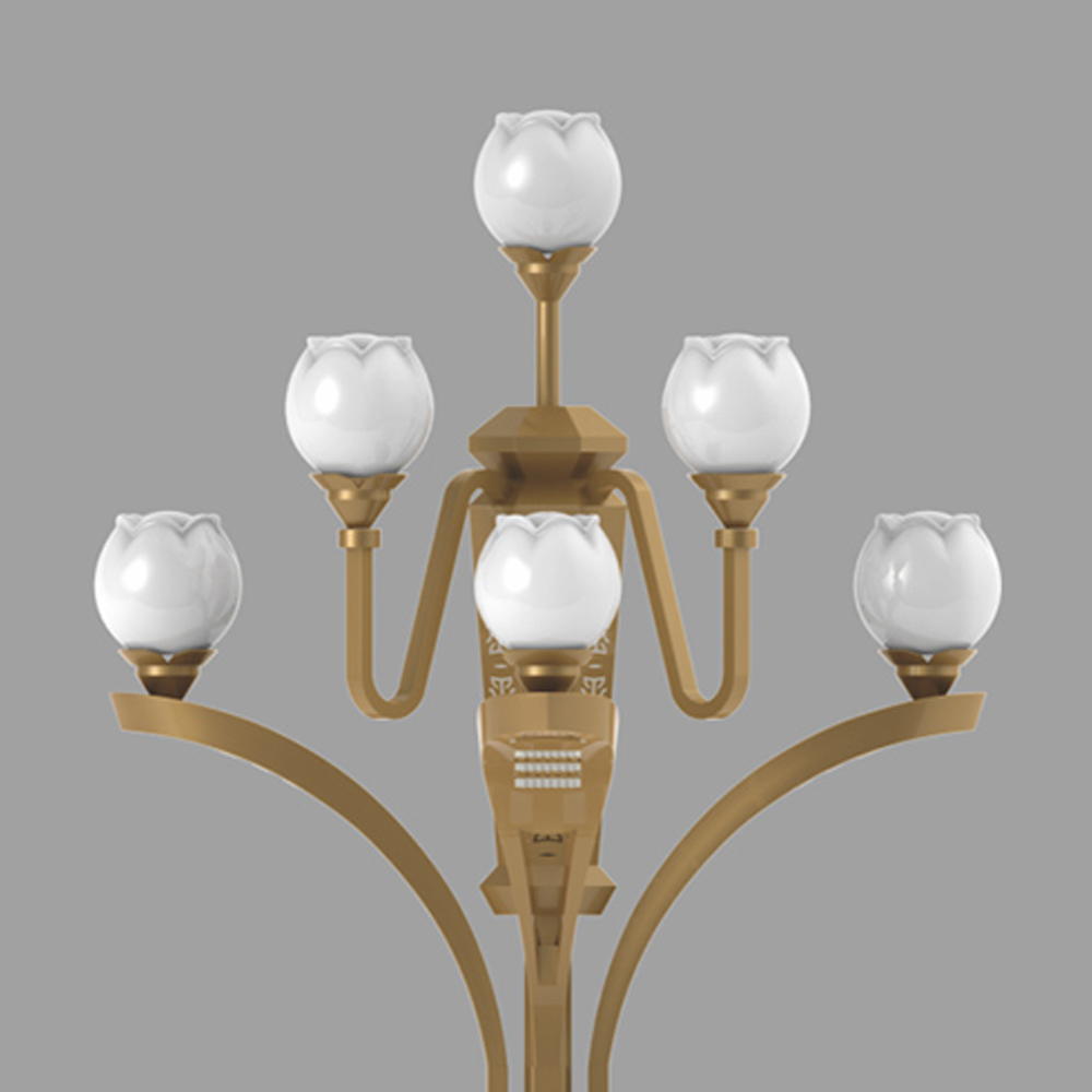 中華燈是一款極具中國特色,外觀大方的多等頭燈具。芙蓉中華燈是在傳統(tǒng)中華燈的基礎上進行了改良,保留其神韻,切加入新的元素,巧妙的運用花瓣的形式,實現(xiàn)了燈桿與燈頭的實體連接;