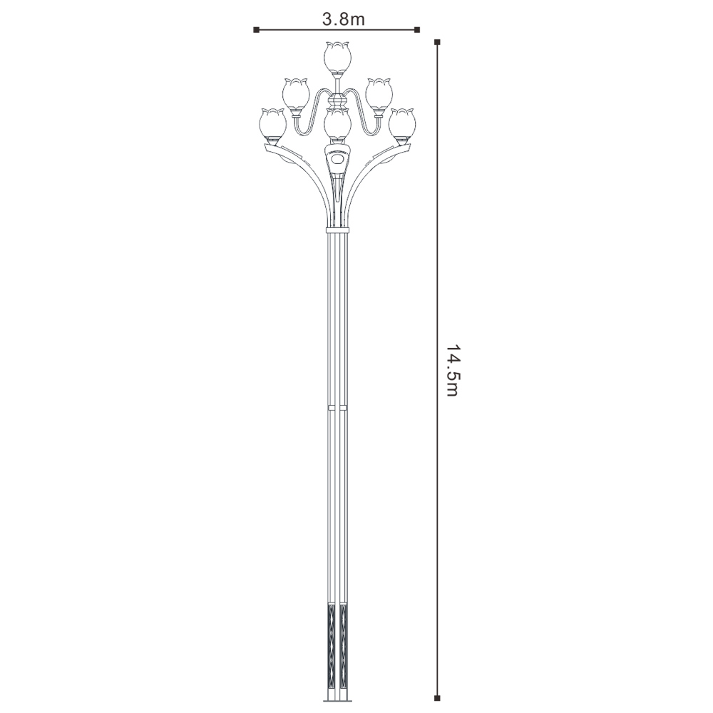 該款燈可以在原有景觀照明基礎上,增加了功能照明,使功能照明和景觀照明完美結合??蓪ED光源巧妙的配置于戶外文化定制燈具中,替代傳統(tǒng)鈉燈及節(jié)能燈光源,使用革命性創(chuàng)新,在不影響使用及美觀的情況下,降低該類裝飾性景觀路燈的功率密度,切可在桿體內側加裝華體單燈智能照明管理系統(tǒng)。