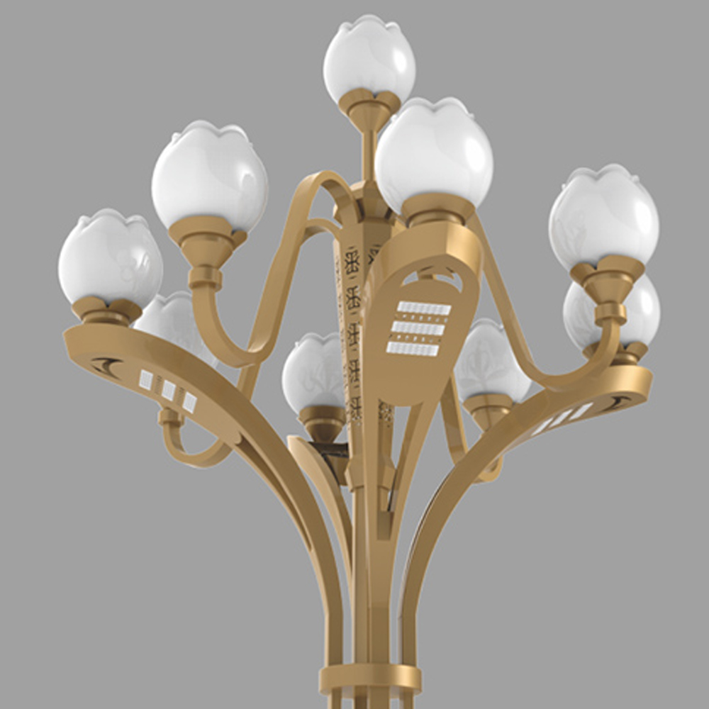 該款燈可以在原有景觀照明基礎上,增加了功能照明,使功能照明和景觀照明完美結合??蓪ED光源巧妙的配置于戶外文化定制燈具中,替代傳統鈉燈及節(jié)能燈光源,使用革命性創(chuàng)新,在不影響使用及美觀的情況下,降低該類裝飾性景觀路燈的功率密度,切可在桿體內側加裝華體單燈智能照明管理系統。