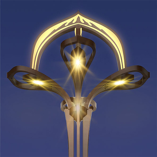 下方安裝了主光源,與兩側(cè)燈臂處燈光融為一體,交錯(cuò)互映,熠熠生輝。