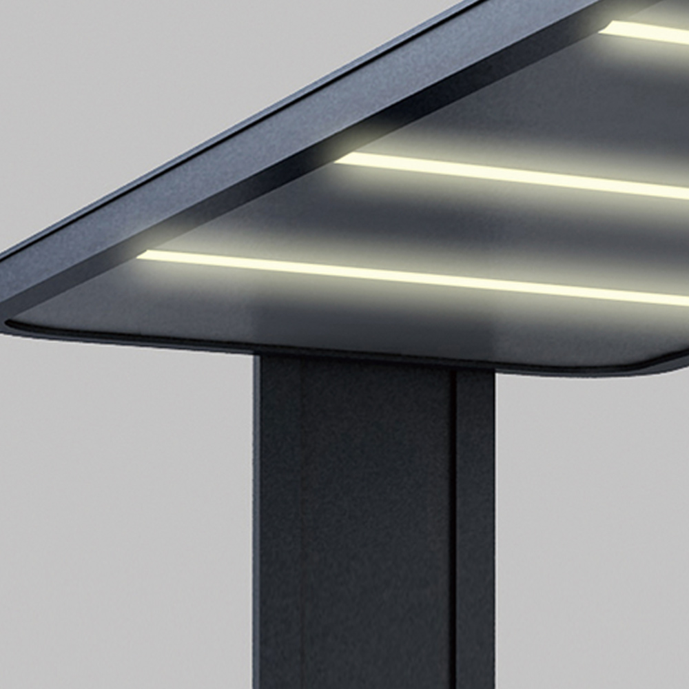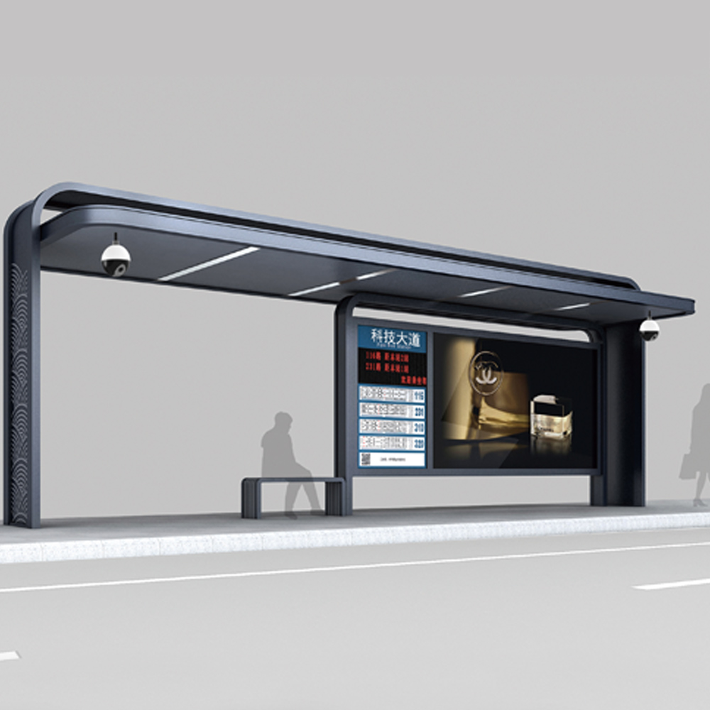公交車站頂部配有LED節(jié)能燈, 結(jié)構(gòu)美觀, 不容易受損, 壽命時(shí)間長, 節(jié)能環(huán)保 。