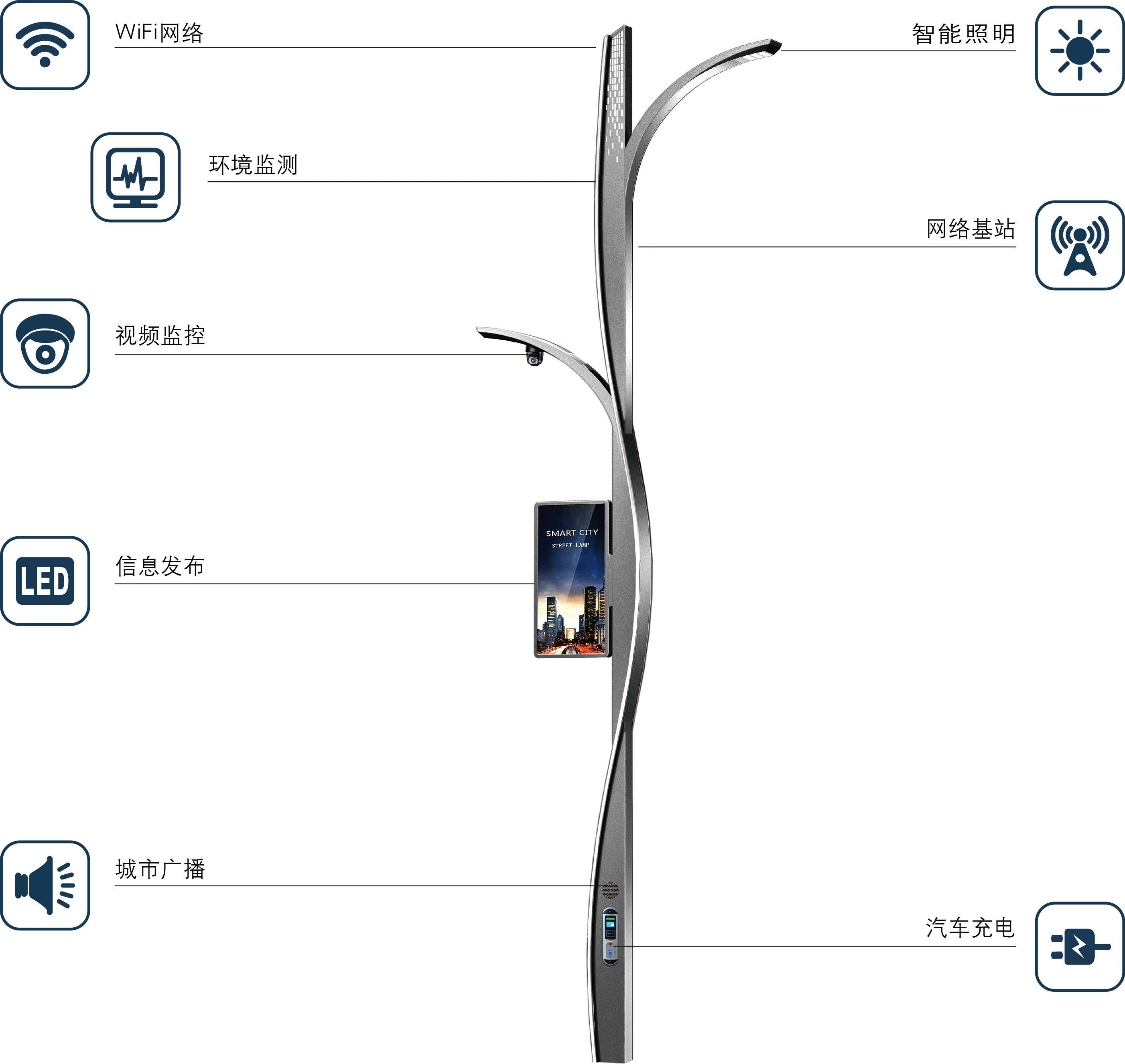 首页 >产品>多功能智慧灯杆>智慧路灯